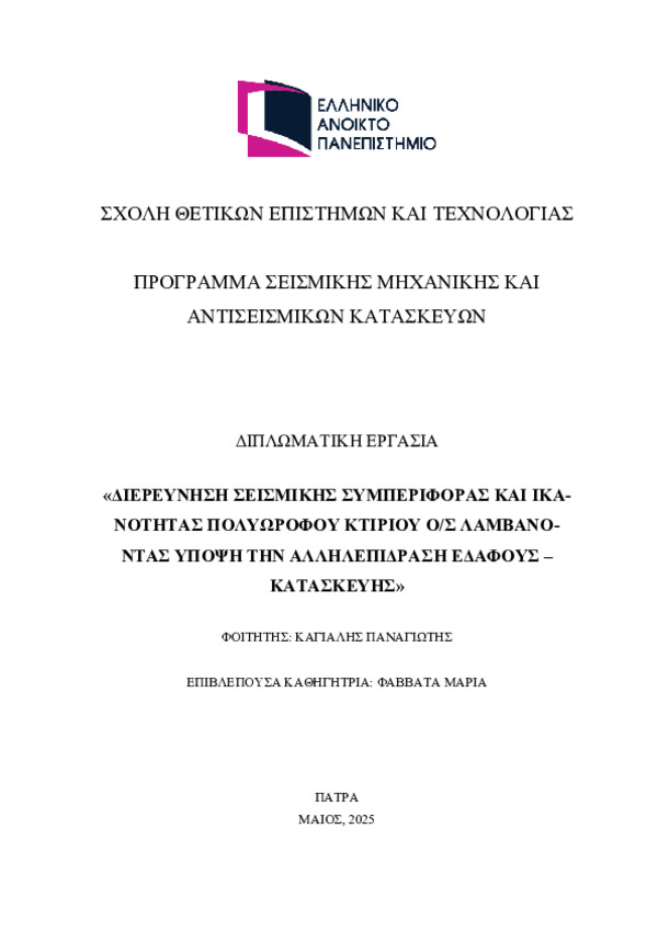 - Σεισμική ικανότητα κτιρίου | Επιρροή του εδάφους | Ανελαστική ανάλυση κτιρίου