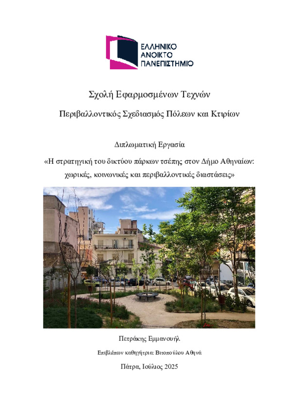 «Η στρατηγική του δικτύου πάρκων τσέπης στον Δήμο Αθηναίων: χωρικές, κοινωνικές και περιβαλλοντικές διαστάσεις»