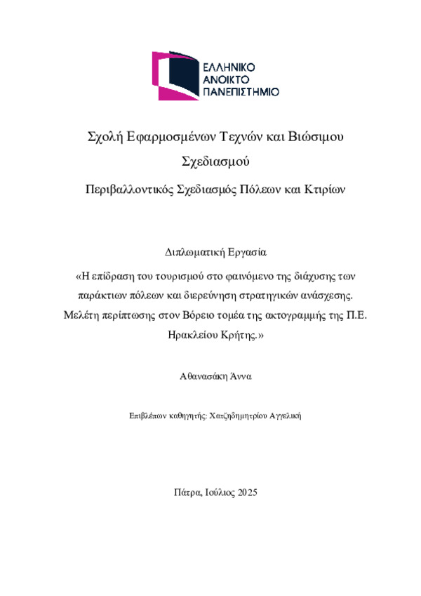 Η επίδραση του τουρισμού στο φαινόμενο της διάχυσης των παράκτιων πόλεων και διερεύνηση στρατηγικών ανάσχεσης. Μελέτη περίπτωσης στον Βόρειο τομέα της ακτογραμμής της Π.Ε. Ηρακλείου Κρήτης.