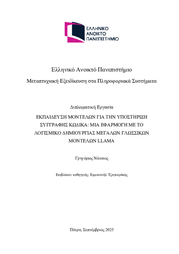Η παρούσα διπλωματική εργασία εστιάζει στην εκπαίδευση και εφαρμογή μεγάλων γλωσσικών μοντέλων τεχνητής νοημοσύνης μέσω της πλατφόρμας Ollama, με βασικό αντικείμενο την υποστήριξη της συγγραφής κώδικα SQL. Στόχος είναι να αξιολογηθεί η ικανότητα των μοντέλων να διευκολύνουν τη διαδικασία προγραμματισμού προσφέροντας αυτόματες προτάσεις, εντοπισμό σφαλμάτων και βελτιστοποιημένες λύσεις σε προγραμματιστικά προβλήματα. Η μελέτη δεν περιορίζεται μόνο στη θεωρητική ανάλυση, αλλά επικεντρώνεται στη χρήση των μοντέλων σε πραγματικά σενάρια και ακαδημαϊκά παραδείγματα, ώστε να εξεταστεί ο ρόλος τους στην εκπαιδευτική διαδικασία και στην πρακτική εφαρμογή της γλώσσας SQL.