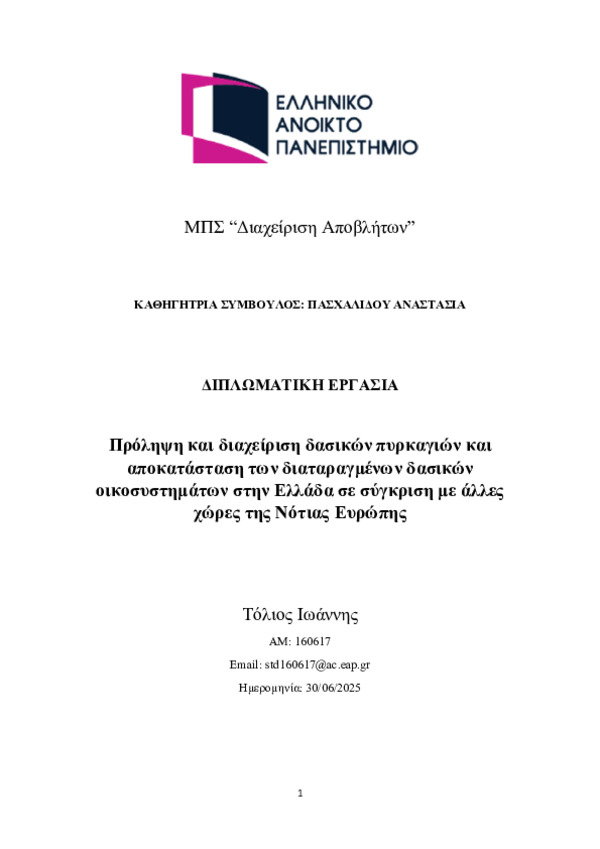Περιγραφή: Πρόληψη και διαχείριση δασικών πυρκαγιών και αποκατάσταση των διαταραγμένων δασικών οικοσυστημάτων στην Ελλάδα σε σύγκριση με άλλες χώρες της Νότιας Ευρώπης.pdf (pdf) Book Reader
