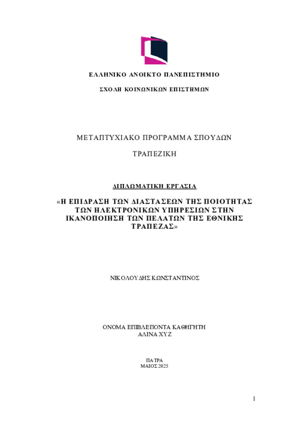 Περιγραφή: Η ΕΠΙΔΡΑΣΗ ΤΩΝ ΔΙΑΣΤΑΣΕΩΝ ΤΗΣ ΠΟΙΟΤΗΤΑΣ ΤΩΝ ΗΛΕΚΤΡΟΝΙΚΩΝ ΥΠΗΡΕΣΙΩΝ ΣΤΗΝ ΙΚΑΝΟΠΟΙΗΣΗ ΤΩΝ ΠΕΛΑΤΩΝ ΤΗΣ ΕΘΝΙΚΗΣ ΤΡΑΠΕΖΑΣ.pdf (pdf) Book Reader