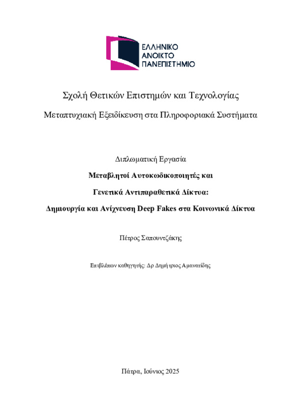 Πόση σιγουριά μπορεί να εμπνέει πλέον ένα πολυμεσικό κείμενο που αναρτάται στο Διαδίκτυο; Παλιότερα, όταν υπήρχε ένα κείμενο προς ανάγνωση, συνήθως συνοδευόταν και από μερικές εικόνες ή και video που έδιναν έμφαση και πιστοποιούσαν την αξιοπιστία του. Τί γίνεται όμως σήμερα, που η τεχνολογία επιτρέπει τη δημιουργία πλαστών εικόνων, υψηλής πιστότητας και αληθοφάνειας; Το θέμα με τα deepfakes απασχολεί τον επιστημονικό κόσμο και θα συνεχίσει να τον απασχολήσει για μεγάλο διάστημα στο μέλλον. Οι νέες τεχνολογίες των Γενετικών Αντιπαραθετικών Δικτύων, στα οποία δύο νευρωνικά δίκτυα βελτιώνονται συνεχώς καθώς το ένα προσπαθεί να υπερνικήσει το άλλο, και των Μεταβλητών Αυτοκωδικοποιητών, που χρησιμοποιούνται κατά κύριο λόγο για συμπίεση δεδομένων αλλά έχουν και αξιοσημείωτες παραγωγικές δυνατότητες κάνουν τη διάδοση deepfake περιεχομένου μέσω κοινωνικών δικτύων πιο εύκολη. Παράλληλα, όμως, δίνουν και τη δυνατότητα σε ερευνητές να προτείνουν μεθόδους αξιοποίησής τους για την ανίχνευση αυτών των αρχείων.