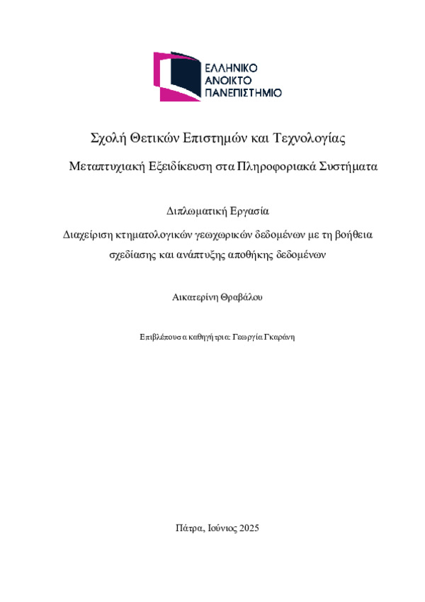 Περιγραφή: ΔΙΑΧΕΙΡΙΣΗ ΚΤΗΜΑΤΟΛΟΓΙΚΩΝ ΓΕΩΧΩΡΙΚΩΝ ΔΕΔΟΜΕΝΩΝ ΜΕ ΤΗ ΒΟΗΘΕΙΑ ΣΧΕΔΙΑΣΗΣ ΚΑΙ ΑΝΑΠΤΥΞΗΣ ΑΠΟΘΗΚΗΣ ΔΕΔΟΜΕΝΩΝ.pdf (pdf) Book Reader