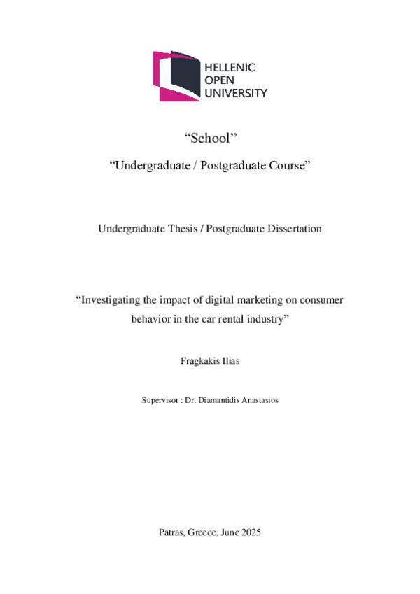 Renting a car is a convenient and economical option for vacation, travel or business needs. It can be an economical and flexible way compared to using a private car or using other means of transport, especially during peak periods. Even before the COVID-19 pandemic, there was a change in consumer behavior in the car rental industry, with most choosing to rent cars instead of buying them for their own personal purposes. This trend, influenced by technology, has led car rental companies to offer new products and services to meet the changing demands of their customers. Car rental companies offer a range of car options to meet the needs of consumers, combined with the necessary equipment required. The car rental industry in Greece is experiencing significant changes due to developments in technology and new innovations. Using modern digital marketing strategies can help car rental companies improve their visibility, attract new customers and tailor their offers based on consumer preferences. They can use digital marketing tools to improve their visibility in the market, thereby helping to increase their customer base both locally and internationally.