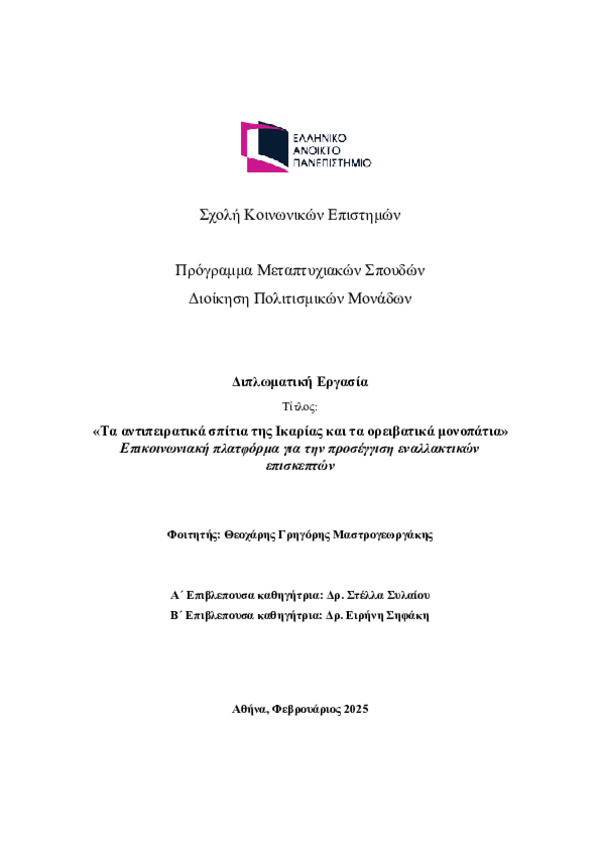 "ΤΑ ΑΝΤΙΠΕΙΡΑΤΙΚΑ ΣΠΙΤΙΑ ΤΗΣ ΙΚΑΡΙΑΣ ΚΑΙ ΤΑ ΟΡΕΙΒΑΤΙΚΑ ΜΟΝΟΠΑΤΙΑ" Επικοινωνιακή πλατφόρμα για την προσέγγιση εναλλακτικών επισκεπτών