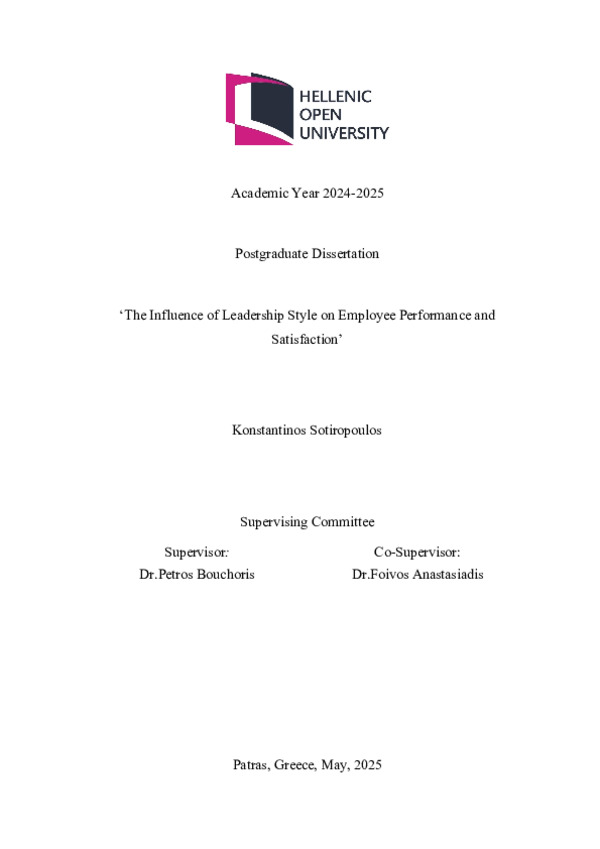 Η Επιρροή του Στυλ Ηγεσίας στην Απόδοση και την Ικανοποίηση των Εργαζομένων (Ελληνική)