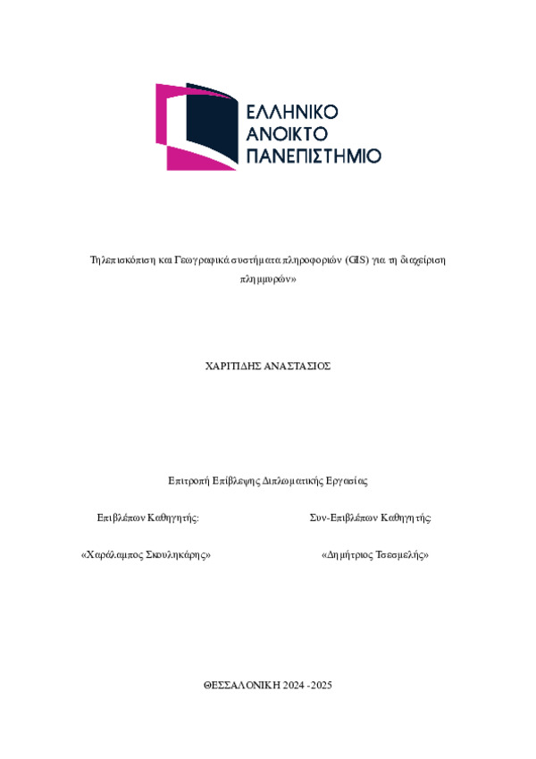 - ΣΚΟΥΛΗΚΑΡΗΣ_ΧΑΡΙΤΙΔΗΣ_ΑΝΑΣΤΑΣΙΟΣ_Τηλεπισκόπιση και Γεωγραφικά συστήματα πληροφοριών (GIS) για τη διαχείριση πλημμυρών