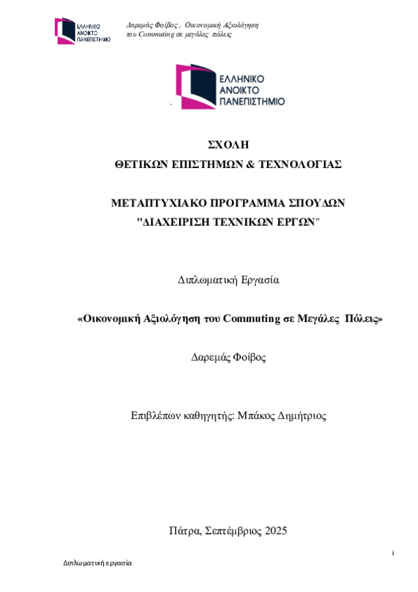 παρούσα εργασία εξετάζονται όλες οι πτυχές του commuting για την πόλη της Αθήνας.