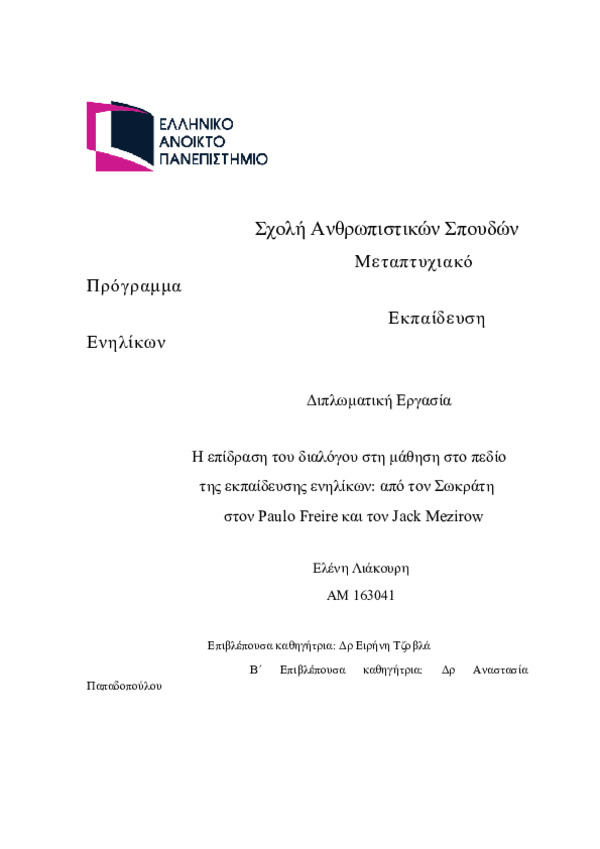 - Σωκράτης | σωκρατικός διάλογος | Paulo Freire | Στοχαστικός Διάλογος | Jack Mezirow | Ορθολογικός διάλογος | Eκπαίδευση ενηλίκων