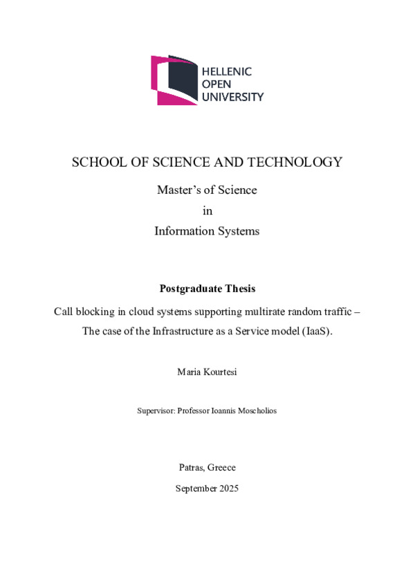 - Call blocking in cloud systems supporting multirate random traffic – The case of Infrastructure as a Service architecture, Maria Kourtesi