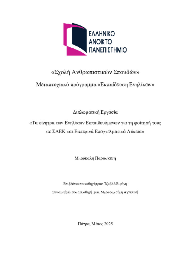 Τα κίνητρα των Ενηλίκων Εκπαιδευομένων για τη φοίτησή τους σε ΣΑΕΚ και Εσπερινά Επαγγελματικά Λύκεια Περιγραφή: Διπλωματική Εργασία_τελικό.pdf (pdf)