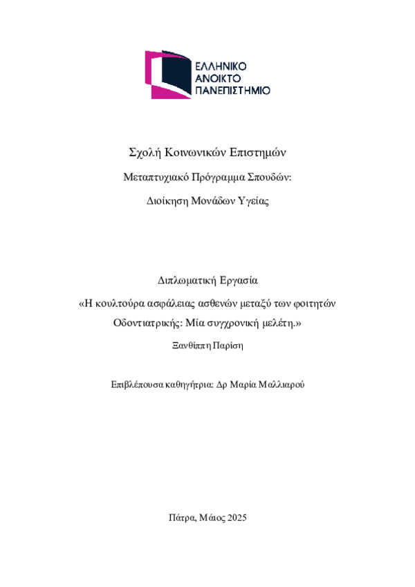 Περιγραφή: H κουλτούρα ασφάλειας ασθενών μεταξύ των φοιτητών Οδοντιατρικής. Μία συγχρονική μελέτη.pdf (pdf) Book Reader