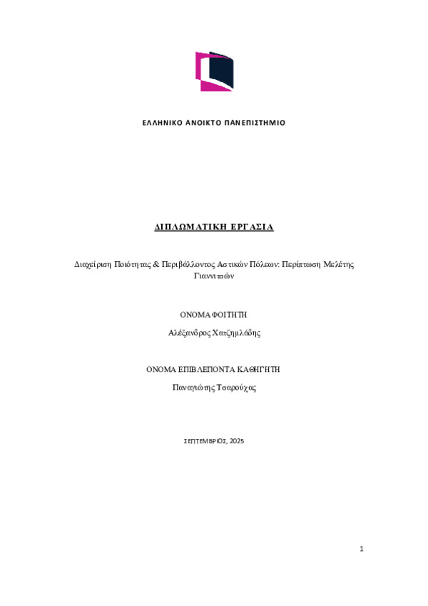 Διαχείριση Ποιότητας & Περιβάλλοντος Αστικών Πόλεων: Περίπτωση Μελέτης Γιαννιτσών