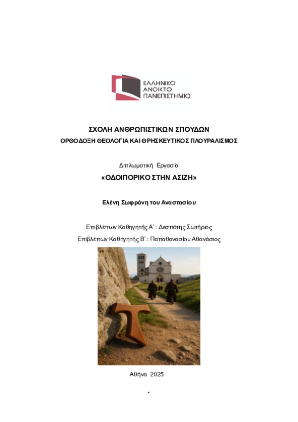 Η Ασίζη είναι ο τόπος που υποδέχτηκε στη ζωή την καθαγιασμένη και ηρωική μορφή του Αγίου Φραγκίσκου. Ο Άγιος αυτός ήρθε στο κόσμο μας για να μας ανοίξει ένα βιωμένο Ευαγγελικό μονοπάτι, που οδηγεί στο Θεό. Ένα μονοπάτι που θα μας ξαφνιάσει, θα μας προβληματίσει και θα μας γοητεύσει.