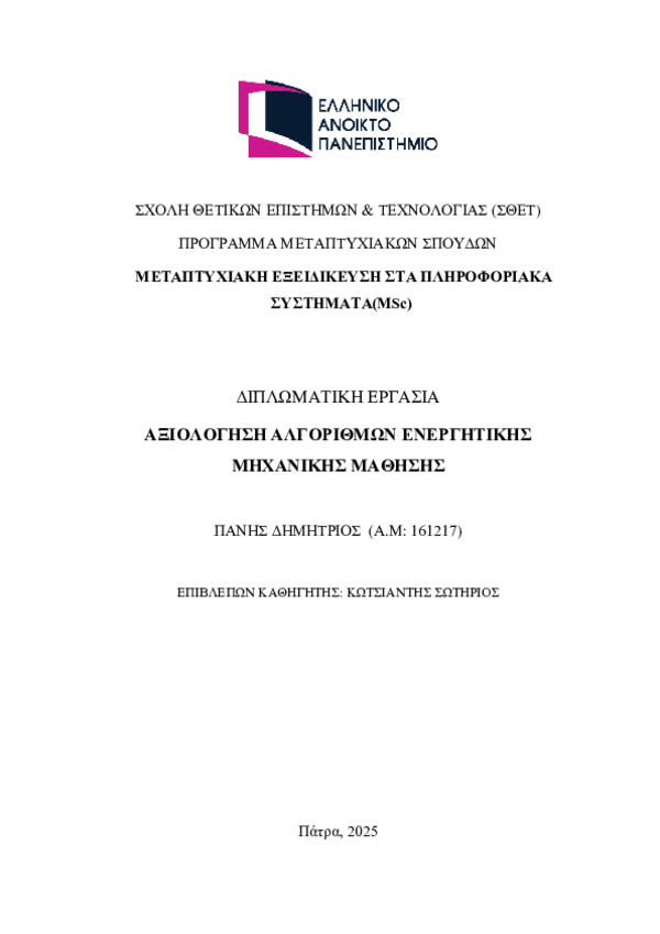 ΑΞΙΟΛΟΓΗΣΗ ΑΛΓΟΡΙΘΜΩΝ ΕΝΕΡΓΗΤΙΚΗΣ ΜΗΧΑΝΙΚΗΣ ΜΑΘΗΣΗΣ