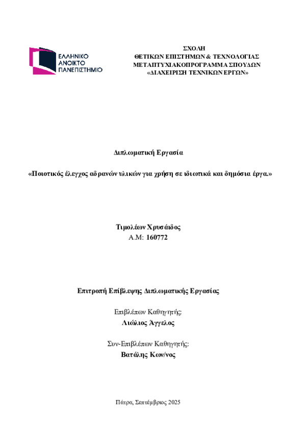 Quality control of aggregates for use in private and public projects. (Αγγλική)