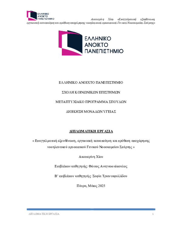 Burnout, job satisfaction and intention to leave of nursing staff at General Hospital of Sparta (Αγγλική)