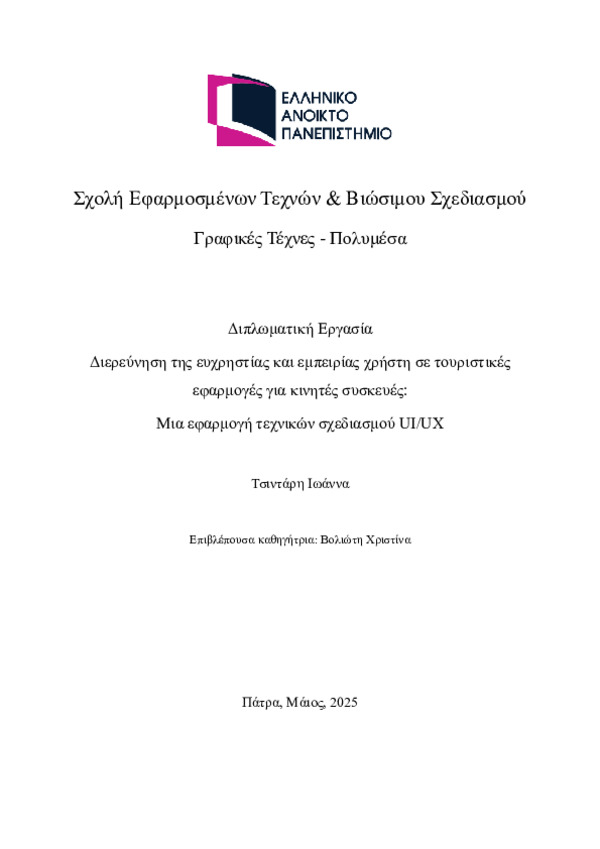 - Τσιντάρη Ιωάννα_ Διερεύνηση της ευχρηστίας και εμπειρίας χρήστη σε τουριστικές εφαρμογές για κινητές συσκευές: Μια εφαρμογή τεχνικών σχεδιασμού UI/UX