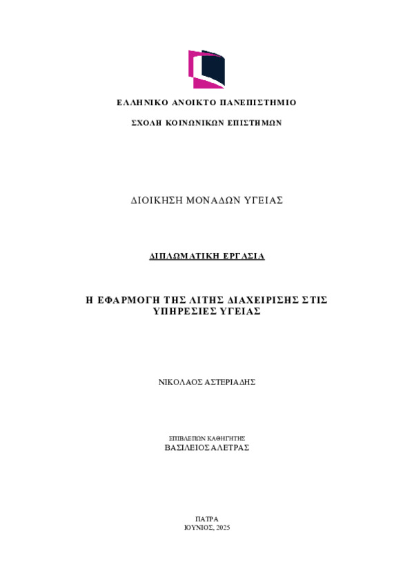 Η ΕΦΑΡΜΟΓΗ ΤΗΣ ΛΙΤΗΣ ΔΙΑΧΕΙΡΙΣΗΣ ΣΤΙΣ ΥΠΗΡΕΣΙΕΣ ΥΓΕΙΑΣ - Identifier: 229074