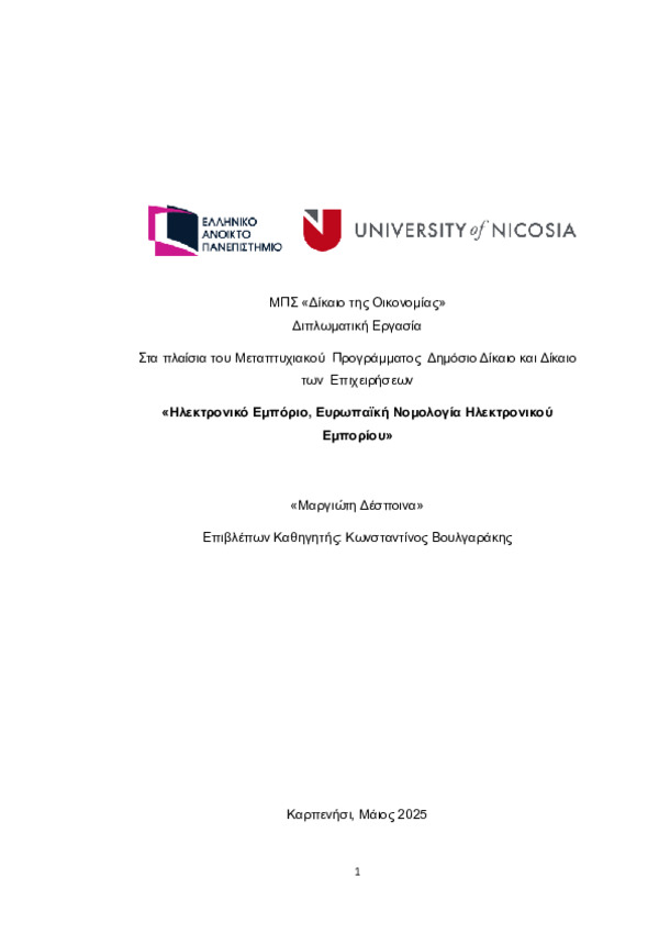 του στην Ευρωπαϊκή Ένωση και αν μπορέσουμε θα εντοπίσουμε προβλήματα και τομείς που χρήζουν βελτίωσης ή ιδιαίτερης προσοχής από την πλευρά τόσο των καταναλωτών όσο και των επιχειρήσεων καθώς λίγο ή πολύ όλοι είμαστε μέρη του ηλεκτρονικού εμπορίου.