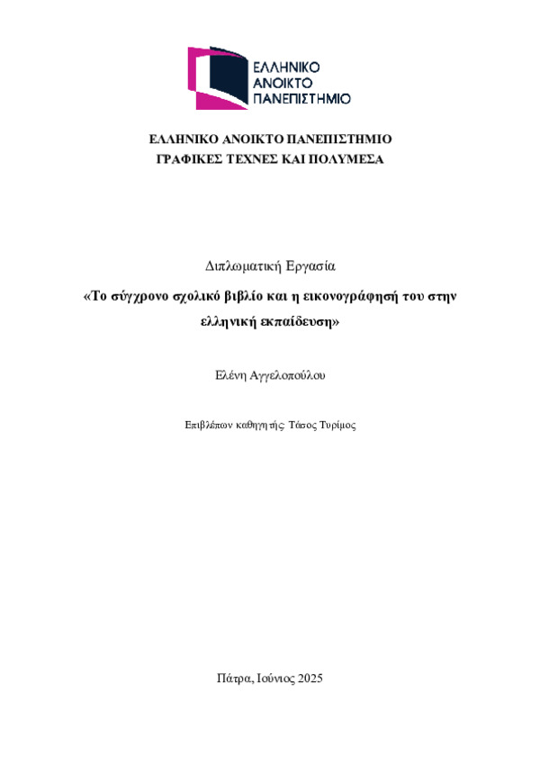 Το σύγχρονο σχολικό βιβλίο και η εικονογράφησή του στην ελληνική εκπαίδευση - Identifier: 229129