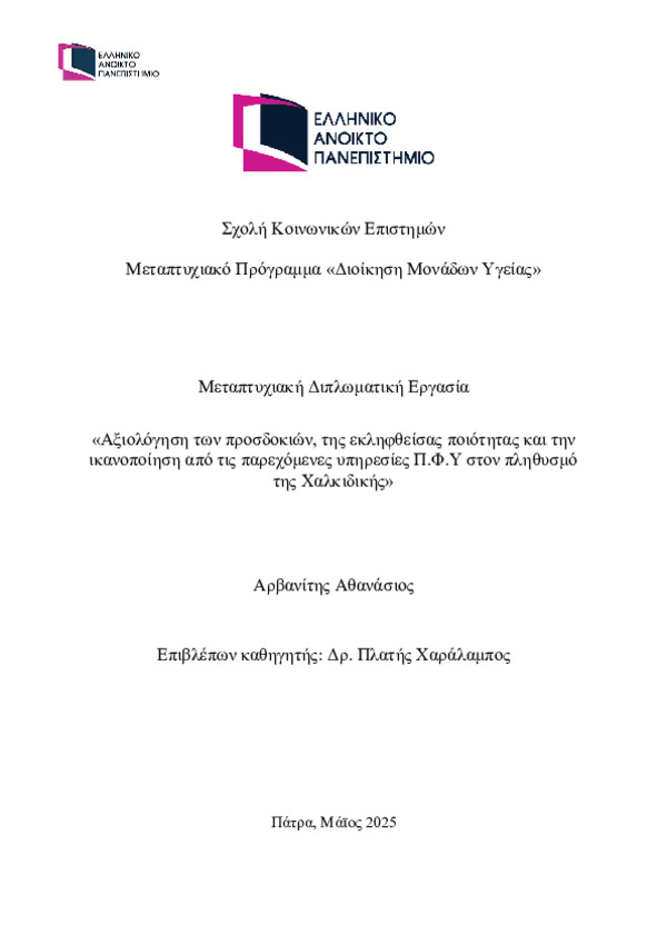 «Αξιολόγηση των προσδοκιών, της εκληφθείσας ποιότητας και την ικανοποίηση από τις παρεχόμενες υπηρεσίες Π.Φ.Υ στον πληθυσμό της Χαλκιδικής»