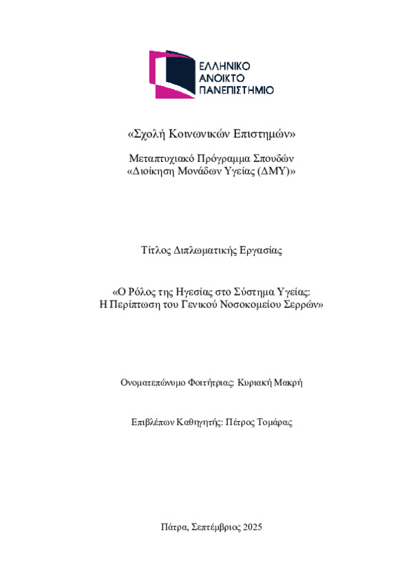 Ο Ρόλος της Ηγεσίας στο Σύστημα Υγείας: Η Περίπτωση του Γενικού Νοσοκομείου Σερρών