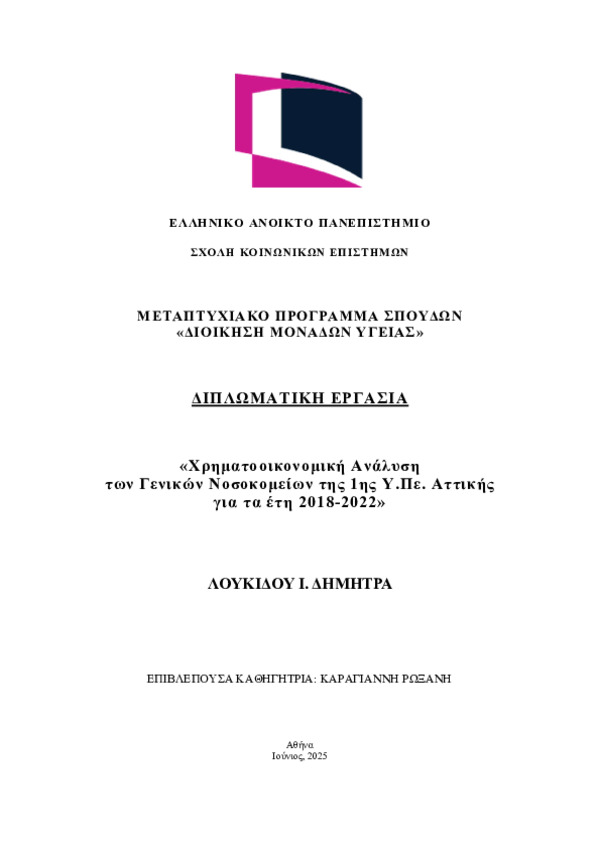 Financial Analysis of the General Hospitals in the 1st Regional Health Authority of Attica for the Period 2018-2022 (Αγγλική)