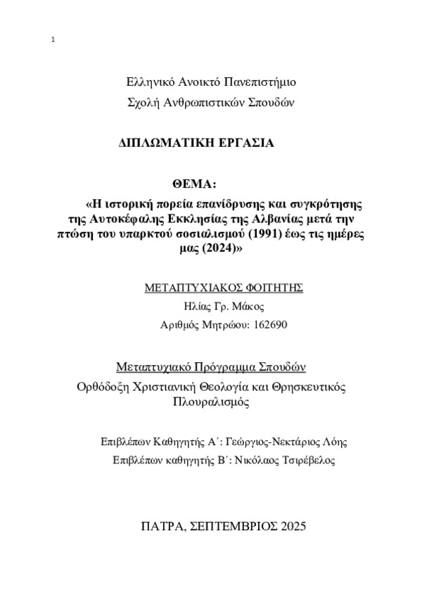 ΔΕ: Πορεία της Ορθόδοξης Εκκλησίας της Αλβανίας (1991-2024) Περιγραφή: ΔΙΠΛΩΜΑΤΙΚΗ ΗΛΙΑΣ ΜΑΚΟΣ.pdf (pdf)