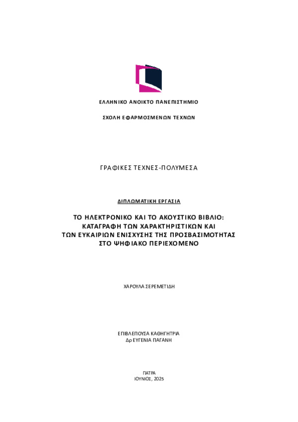 Το ηλεκτρονικό και το ακουστικό βιβλίο: Καταγραφή των χαρακτηριστικών και των ευκαιριών ενίσχυσης της προσβασιμότητας στο ψηφιακό περιεχόμενο