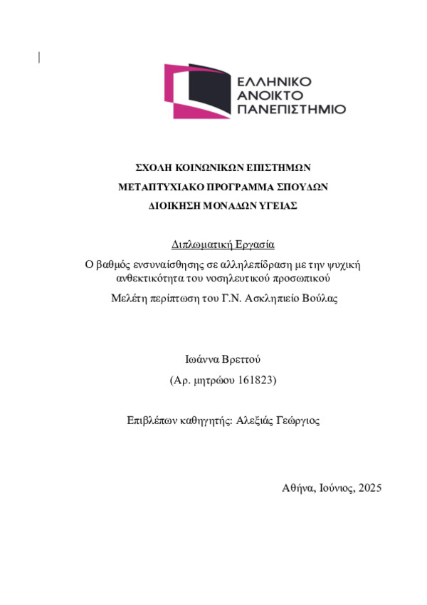 The level of empathy in interaction with the psychic resilience of the nursing staff.Case study:the G.H.Asklepieio Voulas. (Αγγλική)