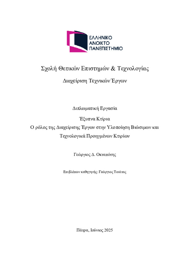 έξυπνων κτιρίων, με ιδιαίτερη έμφαση στην αντιμετώπιση τεχνικών και οργανωτικών