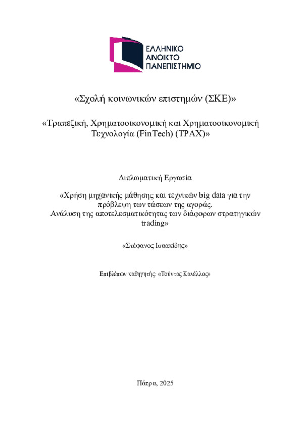 - Mηχανική Mάθηση | big data | ΧΡΗΜΑΤΟΟΙΚΟΝΟΜΙΚΕΣ ΑΓΟΡΕΣ | Επενδυτικές στρατηγικές | trading
