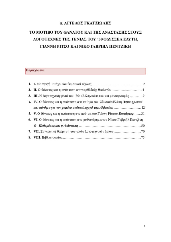 ΤΟ ΜΟΤΙΒΟ ΤΟΥ ΘΑΝΑΤΟΥ ΚΑΙ ΤΗΣ ΑΝΑΣΤΑΣΗΣ ΣΤΟΥΣ ΛΟΓΟΤΕΧΝΕΣ ΤΗΣ ΓΕΝΙΑΣ ΤΟΥ ’30 ΟΔΥΣΣΕΑ ΕΛΥΤΗ, ΓΙΑΝΝΗ ΡΙΤΣΟ ΚΑΙ ΝΙΚΟ ΓΑΒΡΙΗΛ ΠΕΝΤΖΙΚΗ Περιγραφή: ΤΟ ΜΟΤΙΒΟ ΤΟΥ ΘΑΝΑΤΟΥ ΚΑΙ ΤΗΣ ΑΝΑΣΤΑΣΗΣ ΣΤΟΥΣ ΛΟΓΟΤΕΧΝΕΣ ΤΗΣ ΓΕΝΙΑΣ ΤΟΥ ’30 ΟΔΥΣΣΕΑ ΕΛΥΤΗ, ΓΙΑΝΝΗ ΡΙΤΣΟ ΚΑΙ ΝΙΚΟ ΓΑΒΡΙΗΛ ΠΕΝΤΖΙΚΗ.pdf (pdf)