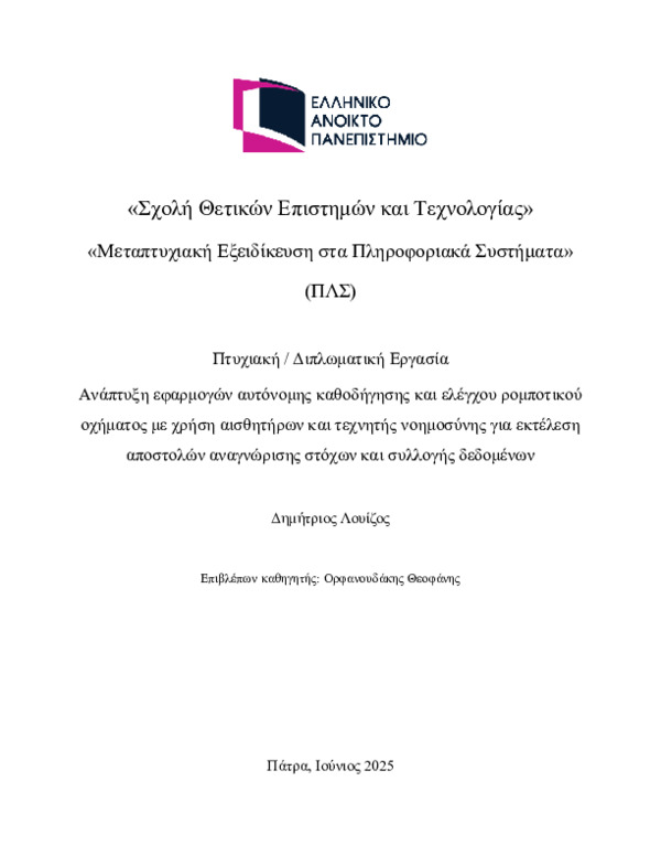 Ανάπτυξη εφαρμογών αυτόνομης καθοδήγησης και ελέγχου ρομποτικού οχήματος με χρήση αισθητήρων και τεχνητής νοημοσύνης για εκτέλεση αποστολών αναγνώρισης στόχων και συλλογής δεδομένων