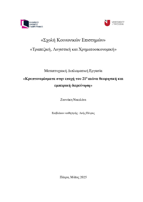 Κρυπτονομίσματα στην εποχή του 21ου αιώνα: θεωρητική και εμπειρική διερεύνηση.