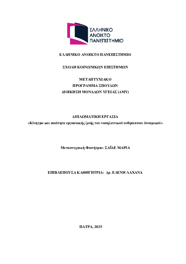ΜΟTIVATION AND QUALITY OF WORK LIFE OF NURSING HUMAN RESOURCES (Αγγλική)