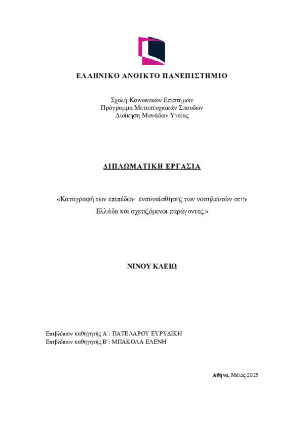 Σκοπός: Η καταγραφή των επιπέδων ενσυναίσθησης στους νοσηλευτές που
