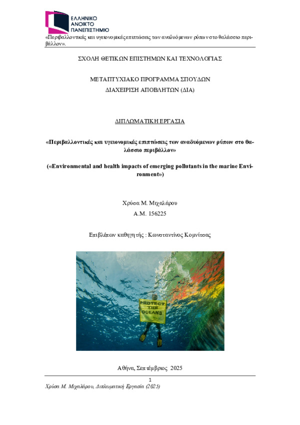 Environmental and health impacts of emerging pollutants in the marine Environment (Αγγλική)