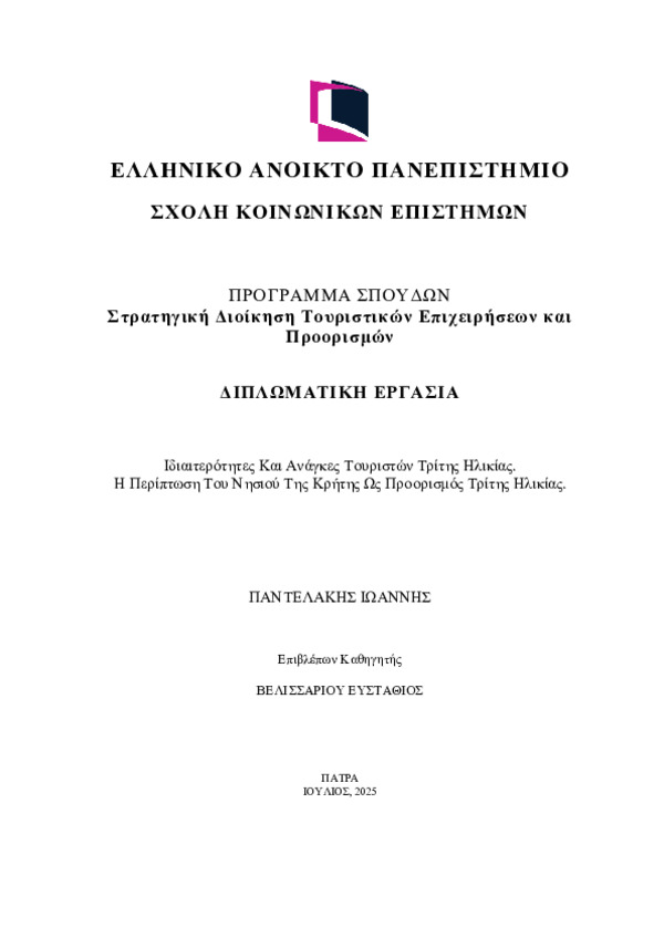 Περιγραφή: ΠΑΝΤΕΛΑΚΗΣ ΙΩΑΝΝΗΣ _Ιδιαιτερότητες Και Ανάγκες Τουριστών Τρίτης Ηλικίας.pdf (pdf) Book Reader