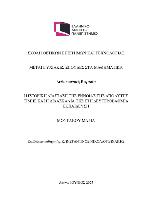 - απόλυτη τιμή, μαθηματική εκπαίδευση, παρανοήσεις μαθητών, διδακτικές προσεγγίσεις, τεχνολογία στην τάξη