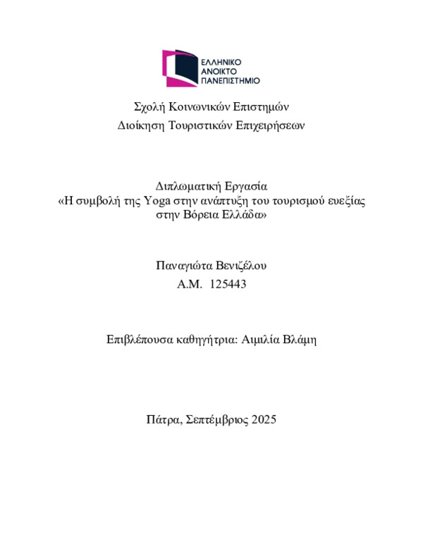 The contribution of Yoga to the development of wellness tourism in Northern Greece (Αγγλική)