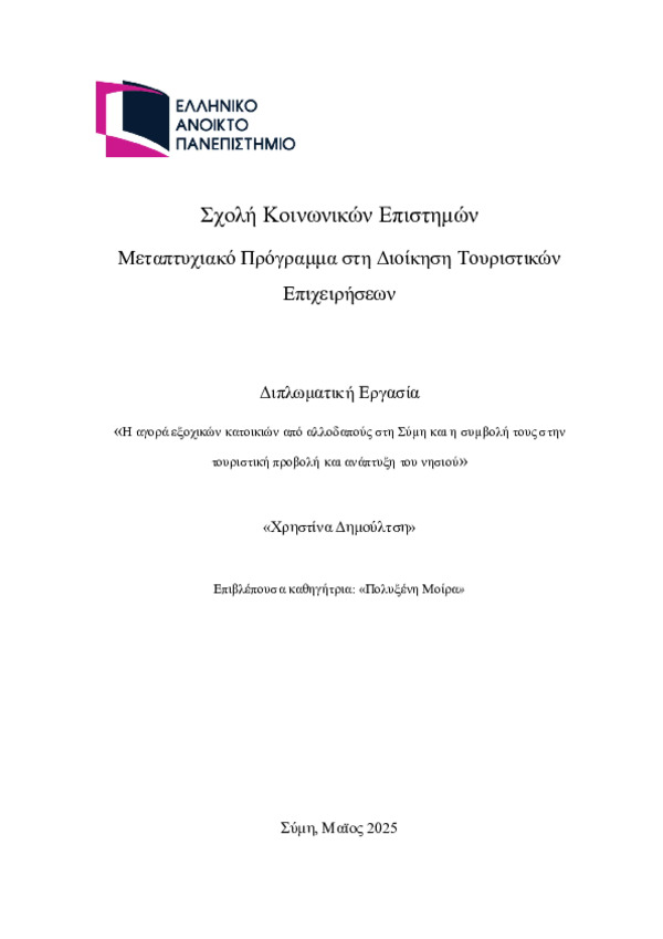 «Η αγορά εξοχικών κατοικιών από αλλοδαπούς στη Σύμη και η συμβολή τους στην τουριστική προβολή και ανάπτυξη του νησιού»