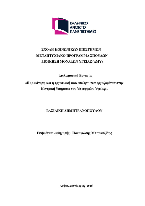 «Motivation and job satisfaction of employees in the Central Service of the Ministry of Health.» (Αγγλική)