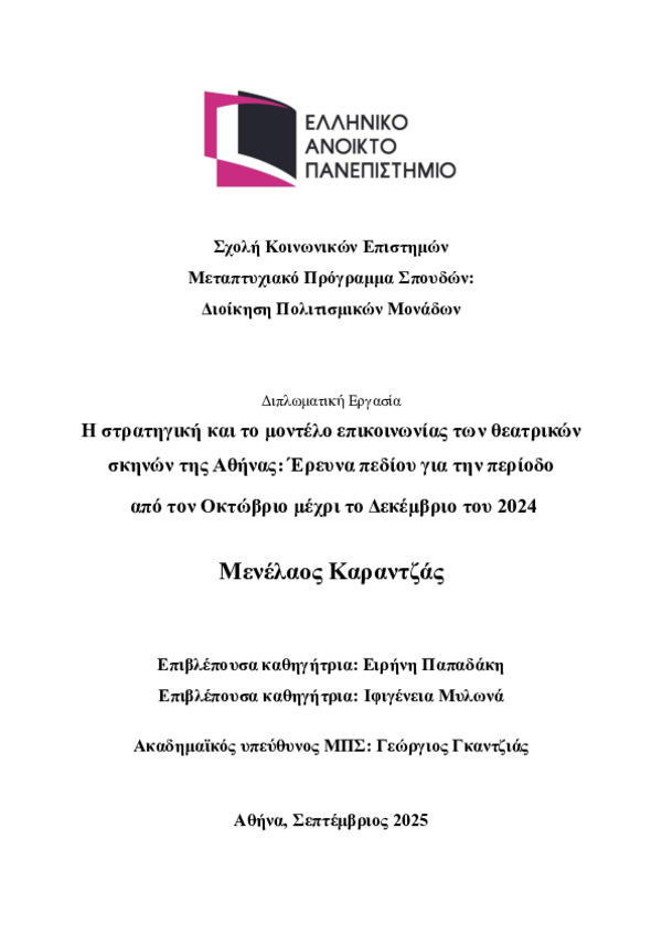 Η στρατηγική και το μοντέλο επικοινωνίας των θεατρικών σκηνών της Αθήνας: Έρευνα πεδίου για την περίοδο από τον Οκτώβριο μέχρι το Δεκέμβριο του 2024
