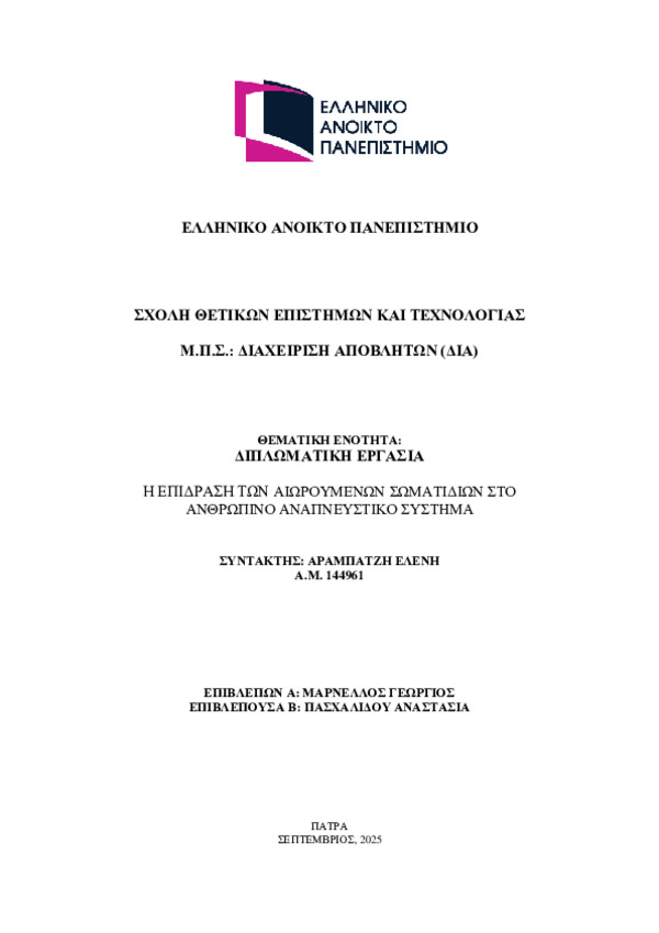- Επιπτώσεις της βραχυχρόνιας έκθεσης σε λεπτομερή ατμοσφαιρικά σωματίδια στην υγεία ευαίσθητων ομάδων πλυθησμού/ Μπέντος