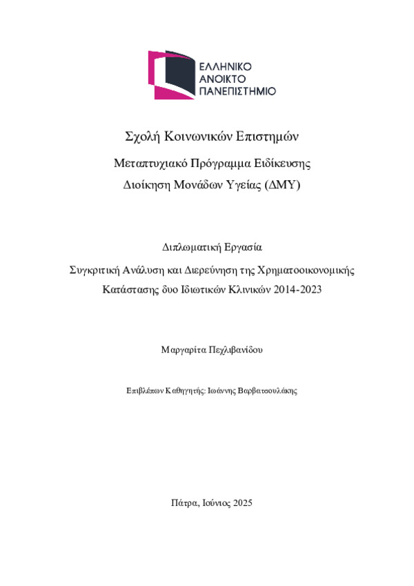 Comparative analysis and investigation of the financial statements of two private hospitals 2014–2023 (Αγγλική)