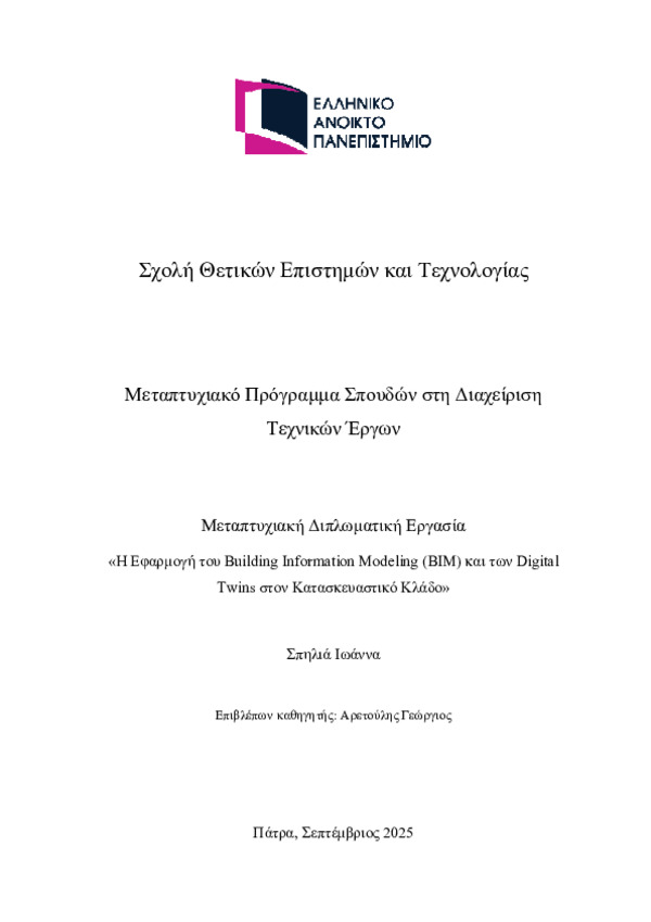 Η Εφαρμογή του Building Information Modeling (BIM) και των Digital Twins στον Κατασκευαστικό Κλάδο- Σπηλιά Ιωάννα (Διπλωματική Εργασία)