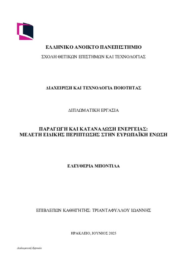 ΠΑΡΑΓΩΓΗ ΚΑΙ ΚΑΤΑΝΑΛΩΣΗ ΕΝΕΡΓΕΙΑΣ: ΜΕΛΕΤΗ ΕΙΔΙΚΗΣ ΠΕΡΙΠΤΩΣΗΣ ΣΤΗΝ ΕΥΡΩΠΑΪΚΗ ΕΝΩΣΗ